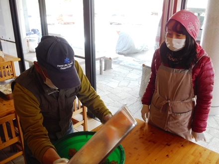 先シーズンは大豆の収穫が少なく、皆さんにも提供したため自宅用の味噌は1kgしか確保できず、在庫切れを心配していたところ、タイミングよく西原から案内が届いたもので、味噌作りのみ参加してきました。